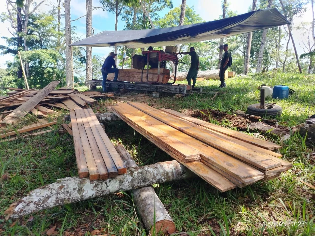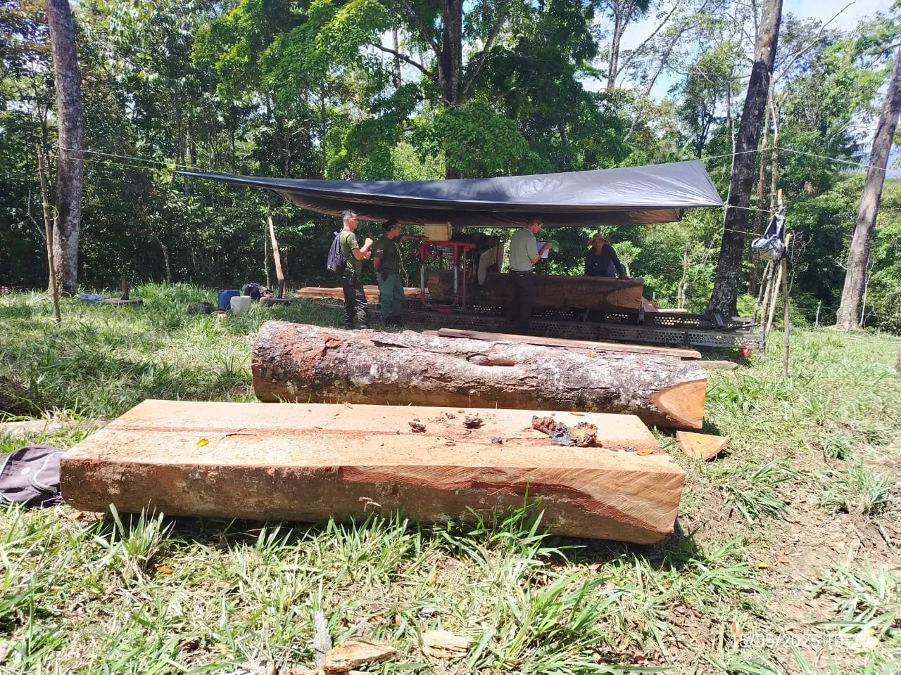Timber and a portable sawmill are observed. This operation took place in the community of Agua Caliente de Pittier.