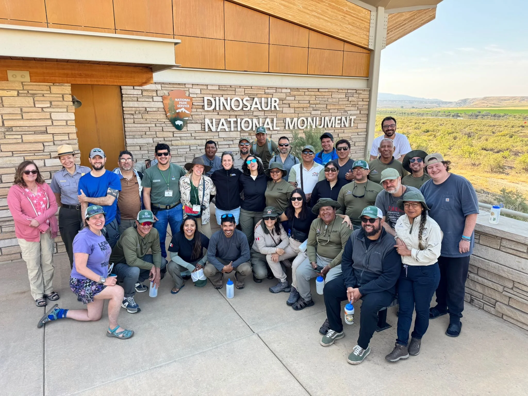 The rangers from the Área de Conservación Guanacaste (ACG) in Costa Rica pose for a picture with the trainers and staff in Dinosaur National Monument in Utah.